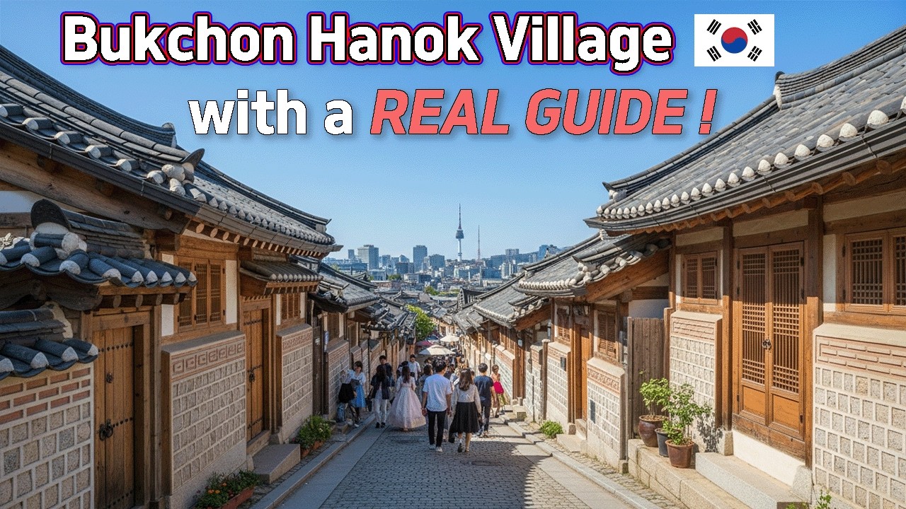 Bukchon Hanok Village is one of Seoul's most photogenic neighborhoods — a hillside district of traditional hanok courtyard houses tucked between Gyeongbokgung Palace and Changdeokgung Palace. The walk winds through narrow alleyways where wooden gates open onto stone-paved lanes, and rooftop silhouettes of curved grey tiles look out over the modern Seoul skyline below.